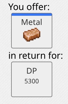 In this post, i’ll make a new reply indicating how many DP is avalible for change, The idea is that instead of you selling metals to DTP, i’ll buy them with an increase of 20%DP of their listed price