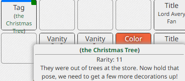 Offering to trade my tag for ‘the Nutcracker’ tag, if anyone who has it is willing/wants this one. Additionally, I can also offer one R10 color alongside, or as a standalone trade item from the screenshot below (Top = 220, 20, 40. Bottom = 220, 0, 0).