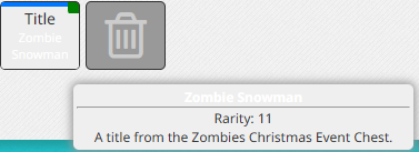 I’m looking to trade my “Present” title for either the “Christmas Tree” or “Present Mimic” tags. And i’ll trade my Mrs. Claus vanity set for the regular Santa vanity set.