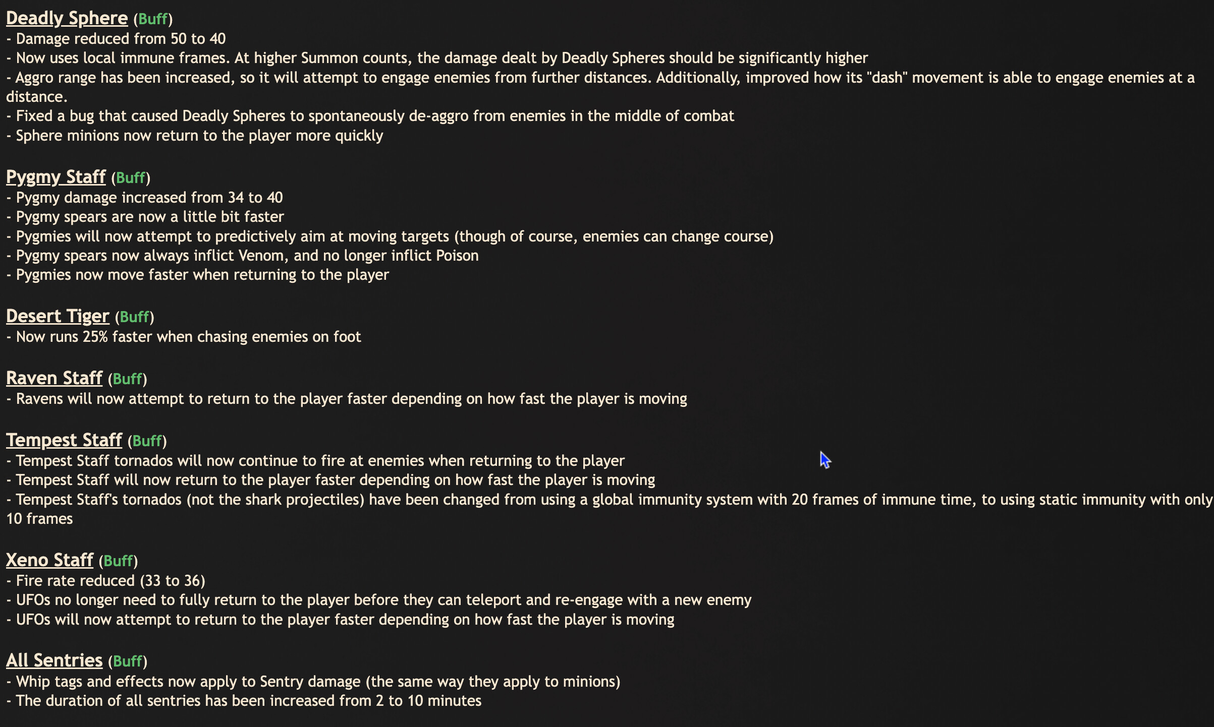 But sentries summon tag update just make tier 3 balisca staff goes over 600 damage pershot (if you have post golem summoner set and durendal)