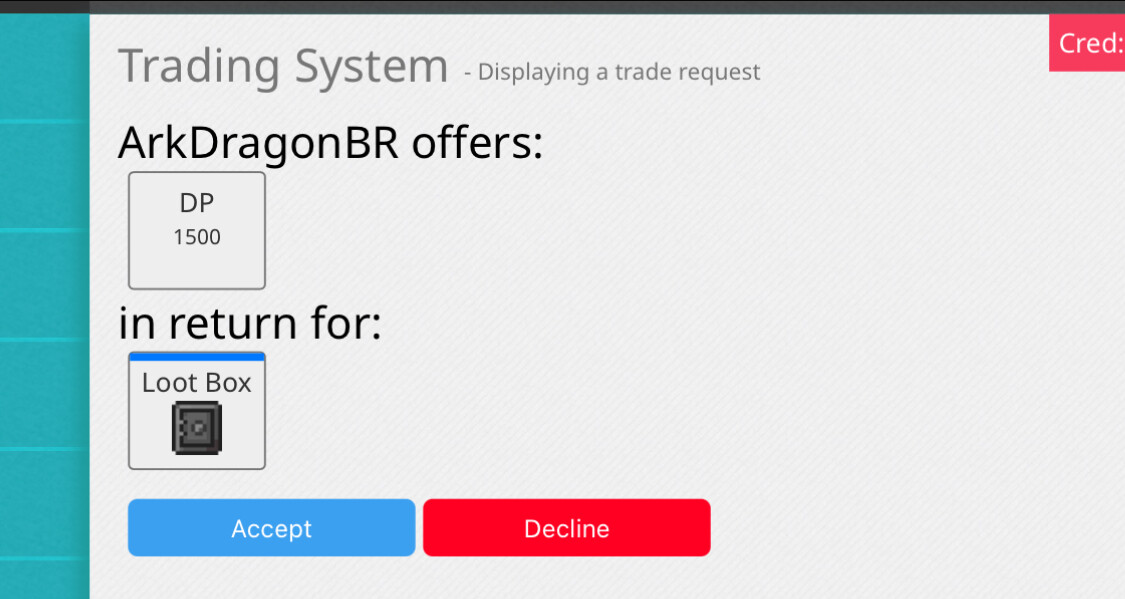 Once the trade is accepted, the deal is final. Loot boxes strictly operate on chance. I am not at fault or responsible if you open your loot box(es) and are unhappy with the results. This is the risk you take when purchasing them. If a trade is bugged, open a topic in Bug Reports, and a staff member will handle it accordingly. If trades become inoperable while my sale is ongoing, I will suspend this process until they are operational again. There should be no error on my end, as I will double-check every trade before accepting it on DTP. If it is my fault, I will cover the cost and make it right. Just wanted to say once again, NO RETURNS. -