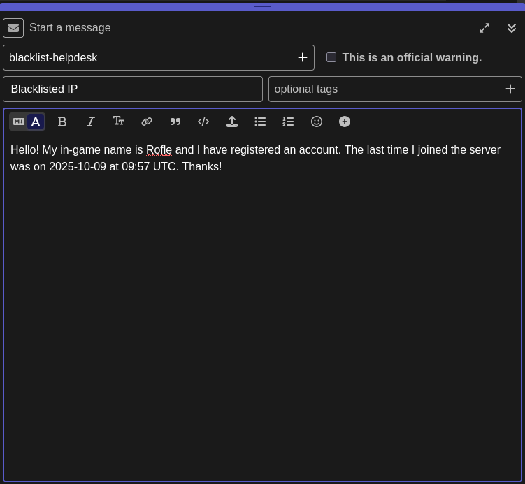 → I think my IP was blacklisted by mistake. Please review and remove the blacklist so I can join again. Thank you!