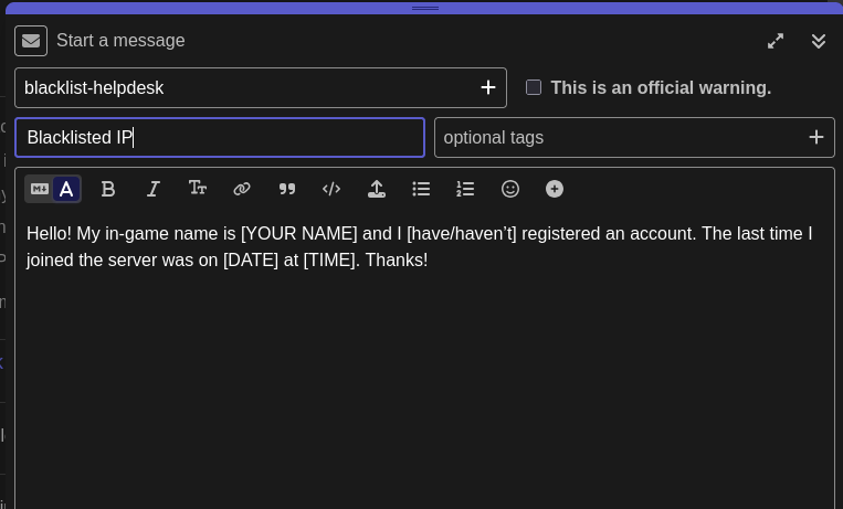 You have to follow the format when messaging the help desk
