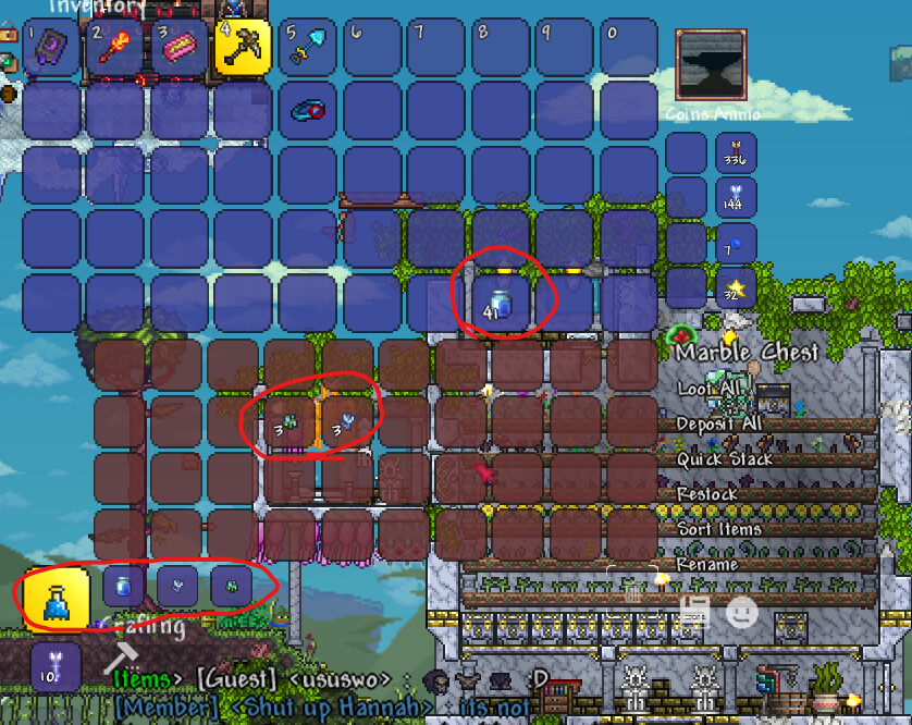I have discovered a way to make infinite potions using an alchemy table and no ingredients by crafting the potion with ingredients from an opened chest and inventory. When crafting things from an opened chest the anti-cheat seems to normally stop it, but if you hold down the craft button, you have a chance to get potions without using any of the ingredients! all of those flipper potions are crafted with those 3 waterleaf & shiverthorn, and only the water bottles and items in the player inventory are used.It doesnt always give a potion so you may have to hold craft a few times, I think this is all due to the alchemy table’s effect. I hope I did this bug report right!